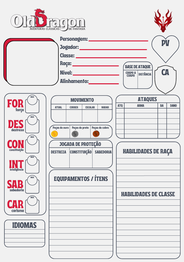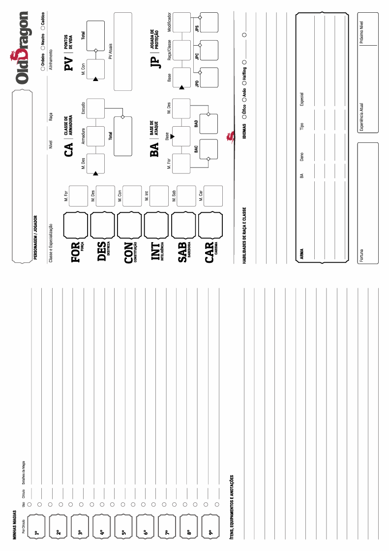 Aqui você encontra fichas feitas ou adaptadas pela comunidade de Old dragon 2E.
