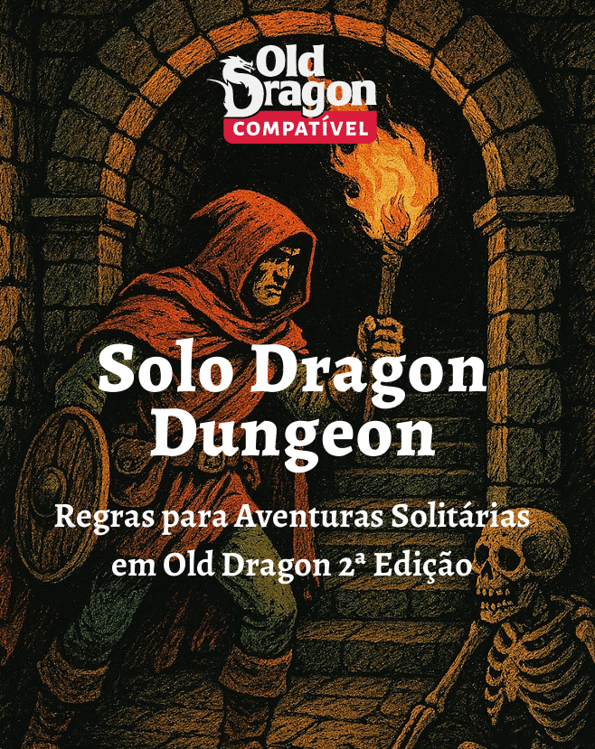 Este material é um verdadeiro mosaico de ideias — uma fusão cuidadosamente trabalhada de regras, tabelas e mecânicas retiradas e adaptadas de diferentes fontes, com destaque para o Old Dragon 2 e seu Apêndice Solo Dragon. O objetivo foi criar um conjunto coeso de ferramentas para quem deseja jogar aventuras solo no universo de Old Dragon, mas com mais variedade, objetivos claros e opções de jogo dentro e fora das masmorras. Este livro não substitui os livros-base de Old Dragon, mas expande as possibilidades de jogo solo, criando uma experiência mais viva e orgânica, onde cada sessão pode ser diferente e cada masmorra conta uma história própria. Por: Rhuan Burle